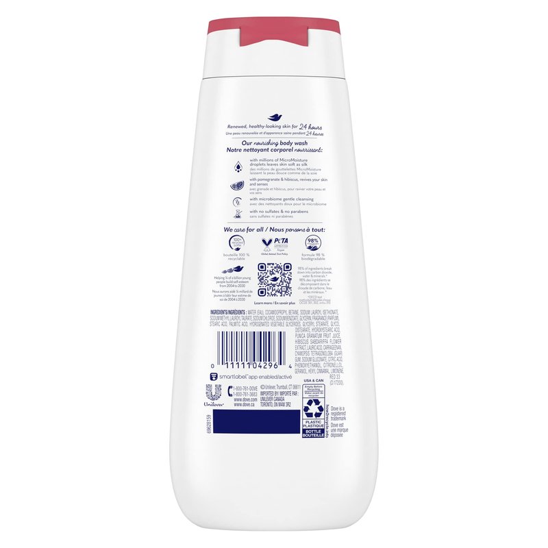 Dove Rejuvenating Body Wash for renewed, healthy-looking skin Pomegranate & Hibiscus gentle body cleanser nourishes and revives skin 325 ml