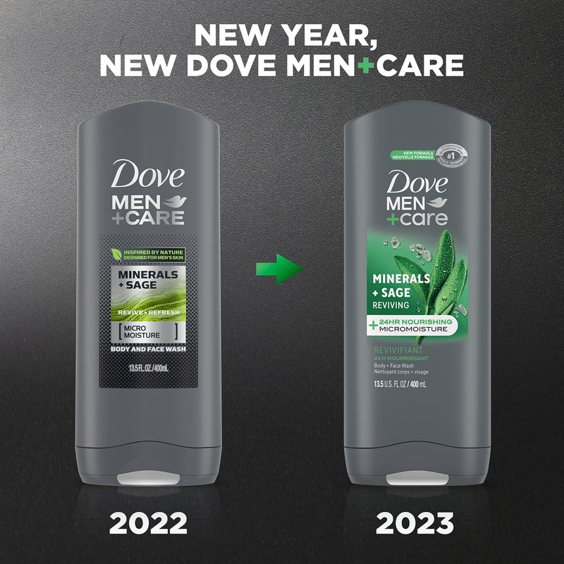 Dove Reviving Minerals & Sage Body and Face Wash with 24-Hour Nourishing Micromoisture Technology Body Wash for Men, 13.5 oz