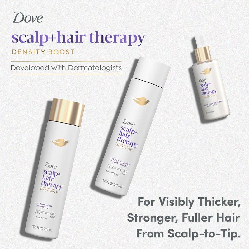 - REAL RESULTS: In a salon study, 90% of the 40 women using the Dove Scalp Hair Therapy Shampoo reported having more body and volume. For the Scalp Hair Therapy Serum, 89% of 74 women in an independent clinical trial saw thicker, stronger hair over 90 days.