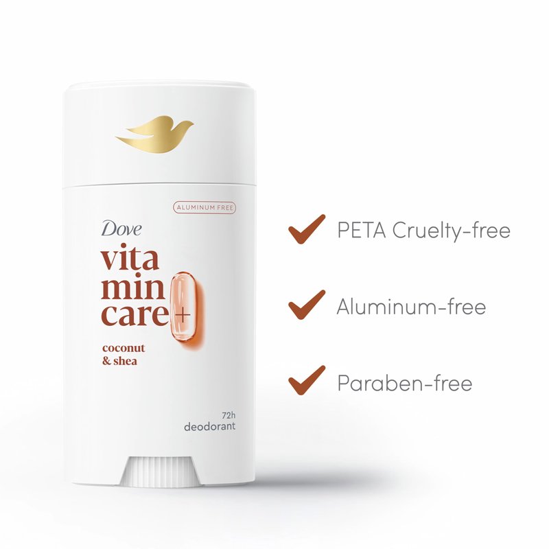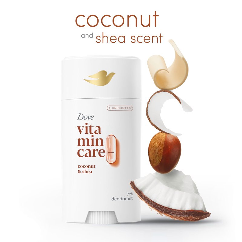 Dove VitaminCare+ Aluminum Free Deodorant Stick Coconut & Shea for 72H Odor Protection Breathable Deodorant for Women 2.6 oz