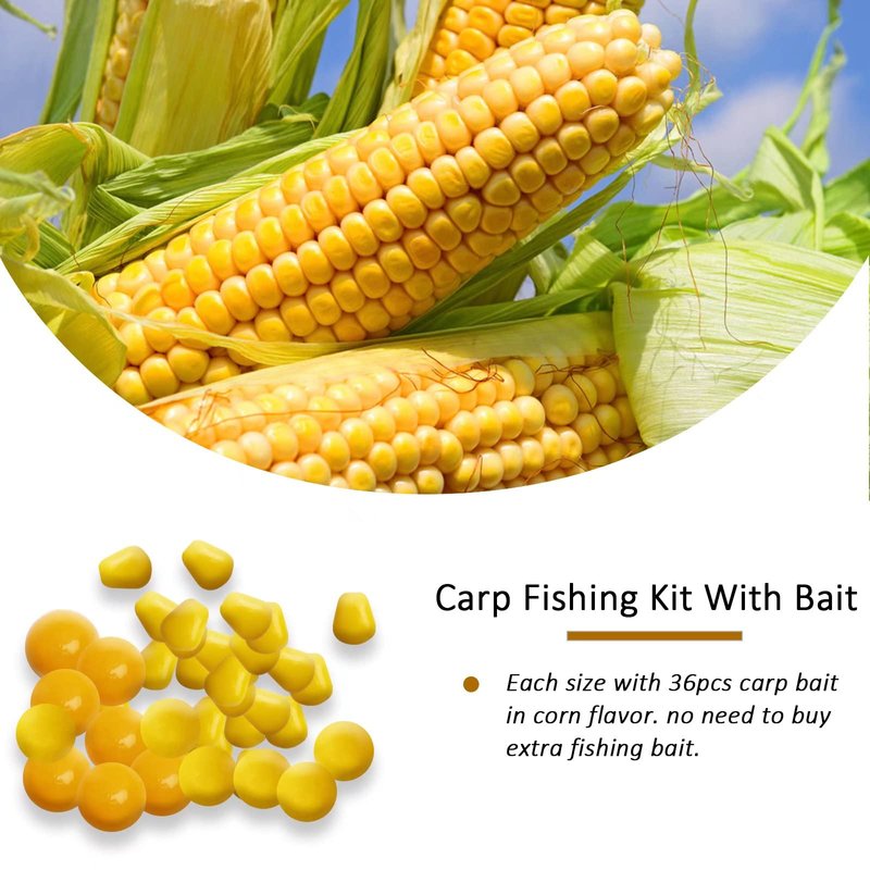 - Multiple Size For Your Choice: we got 2#, 4#, 6#,8# hooks and a 6#+4#+2# kit for your choice. Each size with 36pcs carp bait in corn flavor. no need to buy extra fishing bait. and also 1 stringer needle included in the package.
