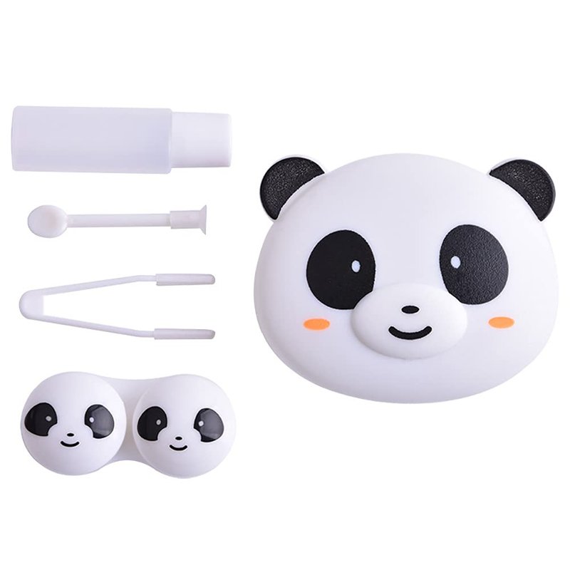 DoyiFun 2 Pcs Pink Pig Contact Lens Case Travel Kit, Cute Portable Panda Bear Animal Contact Lens Box Holder Soak Storage Container with Mirror Bottle Tweezers Stick Remover Tool(Random 2 Style)