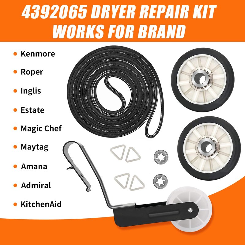- 【FIXES THE PROBLEM】: If your dryer has the following problems, such as dryer is noisy, will not start, no heat or not enough heat, the drum has stopped turning. This may be a reminder that you need to replace the 4392065 dryer repair kit.