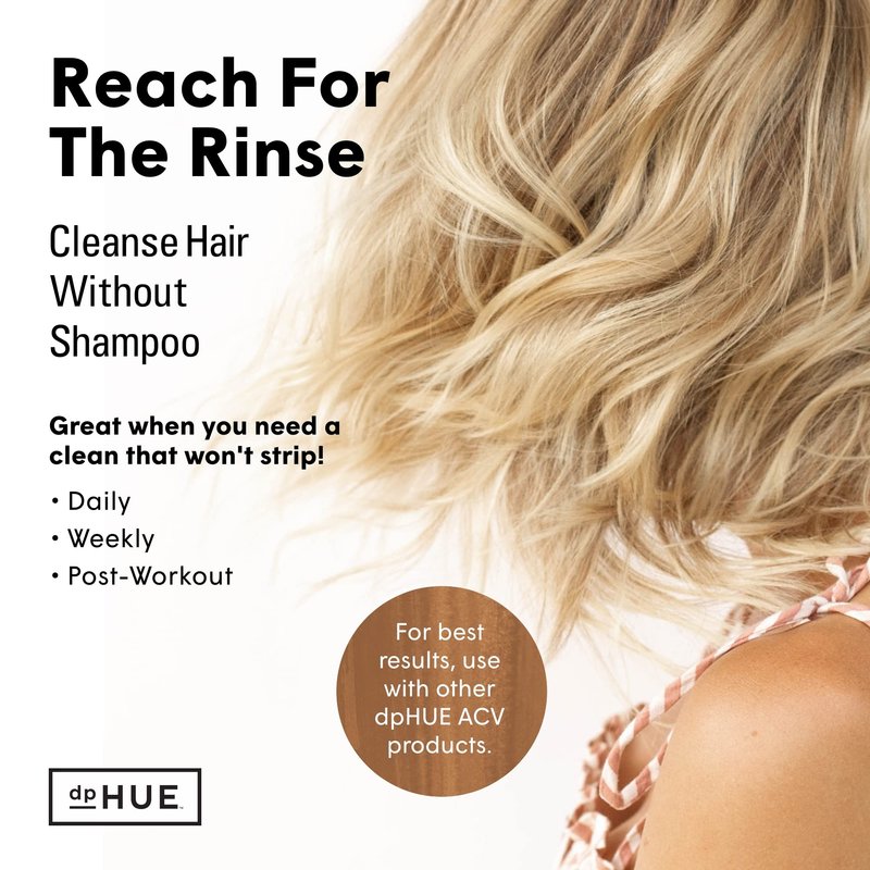 - Don't Over-Shampoo; Our Apple Cider Vinegar Hair Rinse removes impurities without stripping the natural oils that are essential to the health of your scalp and hair; Shampoo less at home; Add ACV to your routine for a clean and soft head of hair