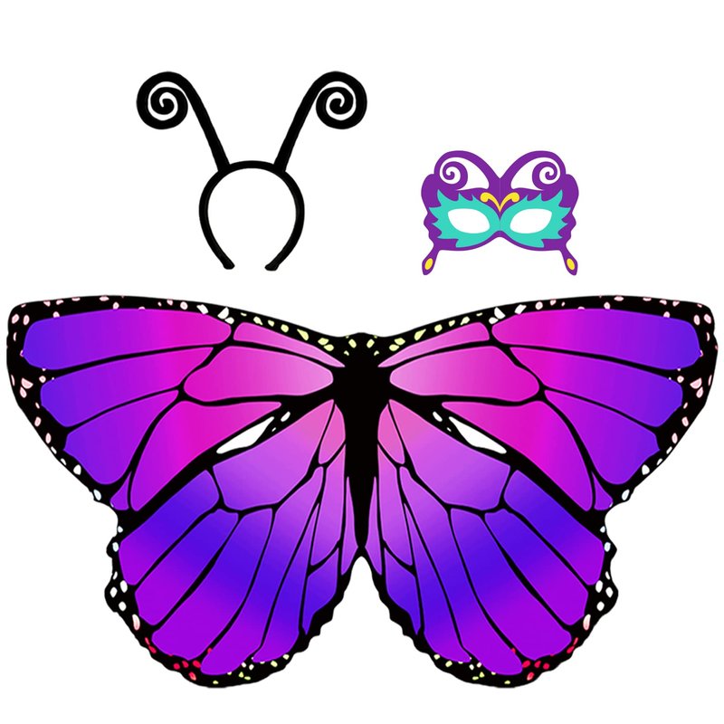 - 1* Butterfly Dress Up Wings for Girls +1* Butterfly Dress Up Mask+ 1* Butterfly Antenna Headband;