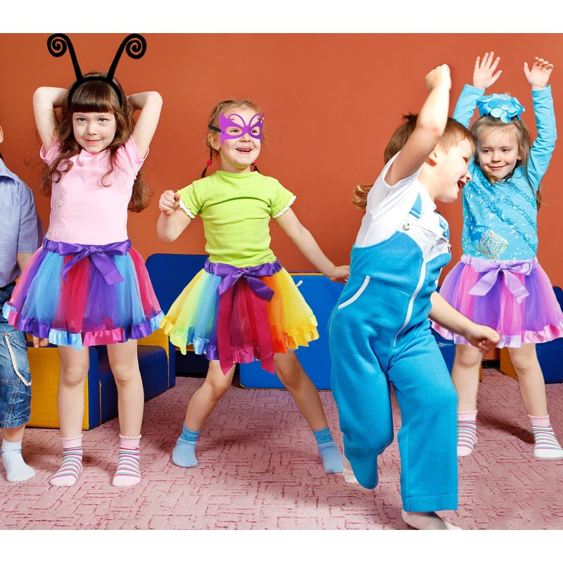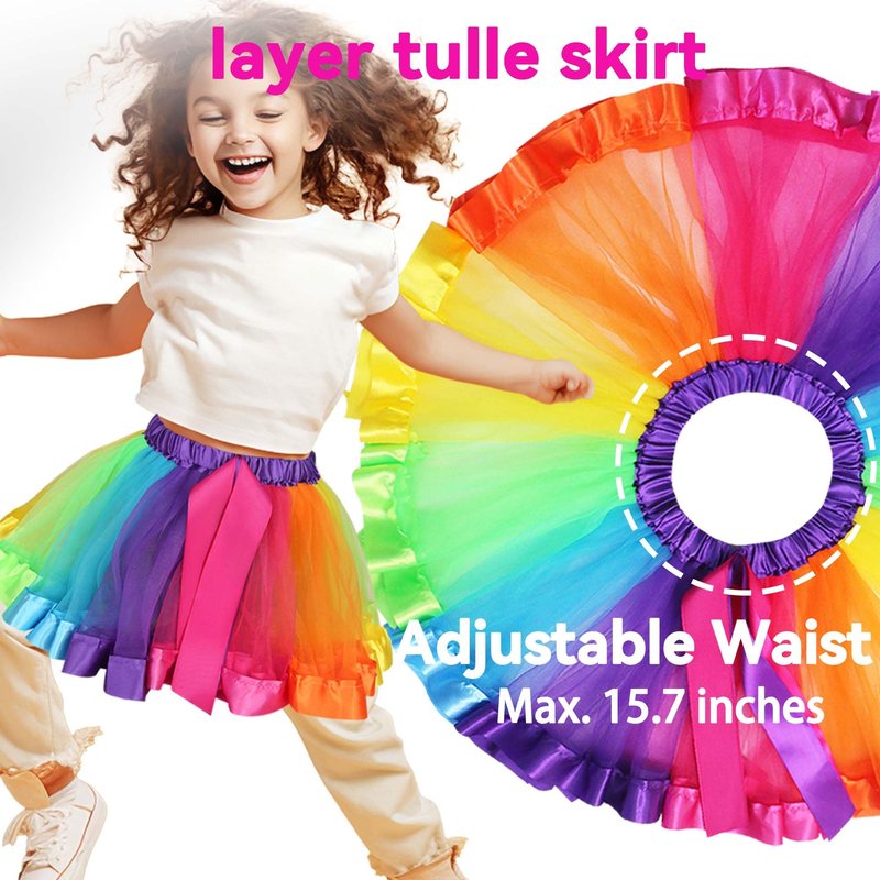 - Adjustable for Comfortable Wearing: Kids Butterfly wings are designed with soft elastic shoulder straps & wrist loops, more comfortable and adjustable. It will free children's hands and let them play more happily. Rainbow Layered Ruffle Tiered Tutu skirt with elastic waist is soft and fluffy.
