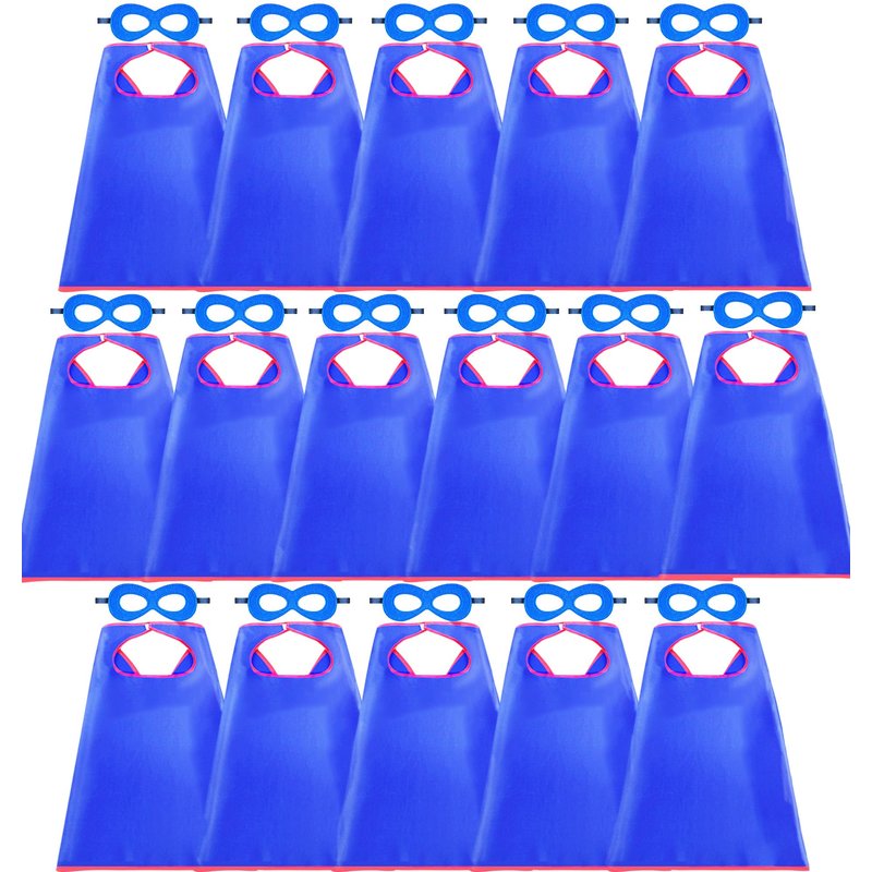 - ➤【Super Pack】- Looking to superhero costumes a troupe of Superheroes? Our bulk superhero capes are best fit for you. This is a set of 16 bulk capes and 16 bulk masks. More sets for choice: 1 color choice per 16 pack in red / royal blue / black / yellow / purple.