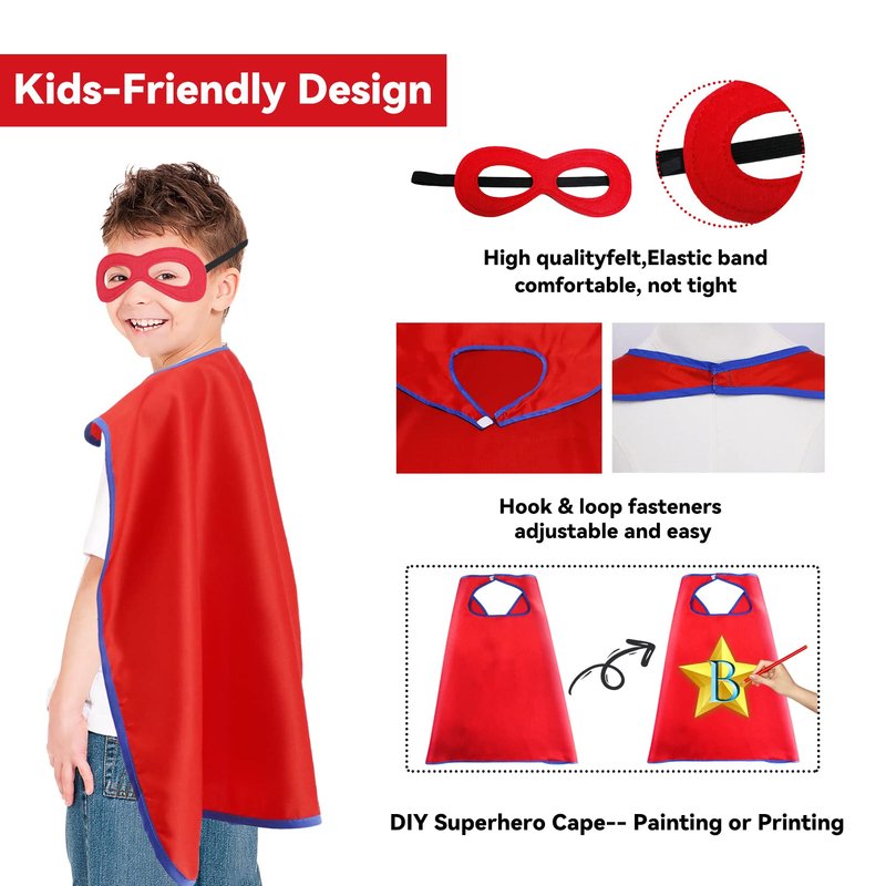 - ➤【Kids Superhero Capes and Masks Sets】 - Kids Superhero Dress Up Capes, 27.5”x 27.5”, great for Most 3-9 years old boys girls, children can have hours of fun with SUPER HERO pretend play capes.