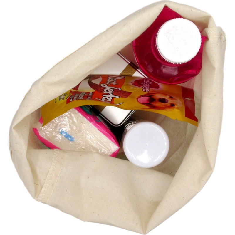 Six Pack of Versatile 14 x 17 Inch Cotton Muslin BagsUse these cotton drawstring bags and play your part to help save the environment. With these handy reusable pouches you do not need plastic bags. Just throw in the laundry to clean. Cotton allows for natural air to circulate and is ideal for pantry storage. Dampen the bags to keep veggies and fruit crisp in the fridge. Your produce will not get slimy like in plastic bags. Use them as original gift bags for birthday parties, weddings or other special occasions. Please wash the bags before first use. They may shrink by about 5 to 10% after the first wash. Features Keep stuff organized Save the environment 100 % cotton material Various handy sizes Gift bags for parties and birthdays Reduce, reuse, recycle! These items are made by hand. The actual size of the bags may vary ±⅛" due to variations in stitching and seams during production.