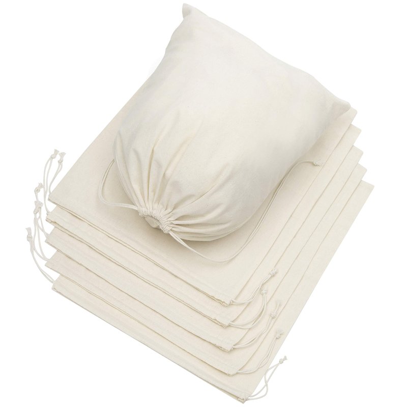 DR 100 Percent Cotton Muslin Shoe Bags 6-Pack For Storage Pantry Gifts - Unbleached (14 x 17, Beige)