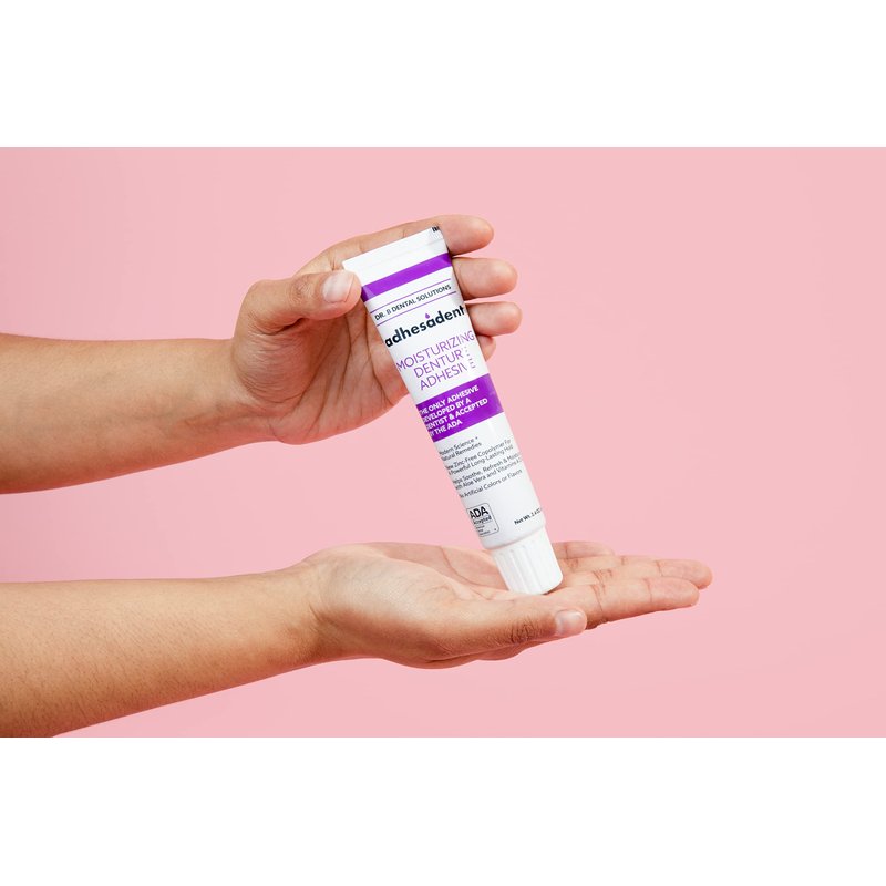 - Secure And Reliable Fit - Adhesadent Moisturizing Denture Adhesive is your go-to adhesive for dentures. Thanks to its powerful zinc-free copolymer, you'll enjoy a comfortable, long-lasting hold for all kinds of dentures.