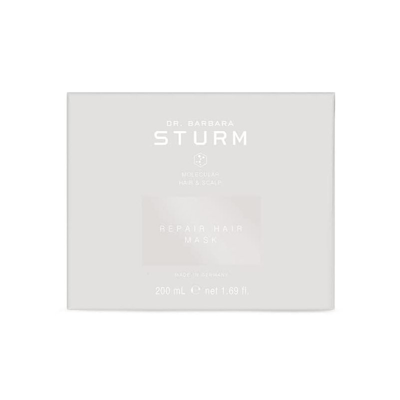 Dr. Sturm's Repair Hair Mask was formulated for intensive, targeted repair and care for dry or damaged hair. Cationic Hyaluronic Acid and organic Shea Butter provide long lasting softness, suppleness and shine making the hair instantly moisturized and manageable. Hemi-Squalane, a clean, plant-based substitute for silicones, prepares the hair for styling and a special complex of Algae and Lavender Extract calms and rebalances the scalp. Pro-Vitamin B5 smooths the hair’s outer layer without weighing it down and Sunflower Sprouts and Tara Extract protect against heat, impurities, UV stress and color fade. The result is visibly nourished, silky-glossy and healthy hair.