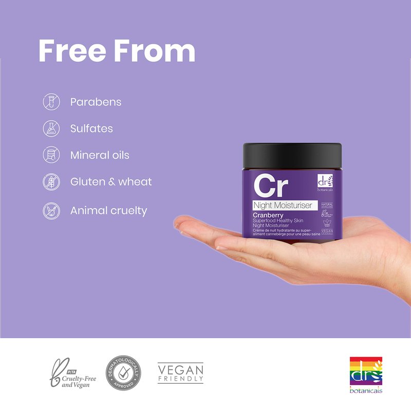 - We created our Cranberry Night Moisturiser to harness the amazing power of these fruits. Infused with only the cleanest of ingredients, it locks in moisture and gently cools the skin, improving the skin’s tone and texture.