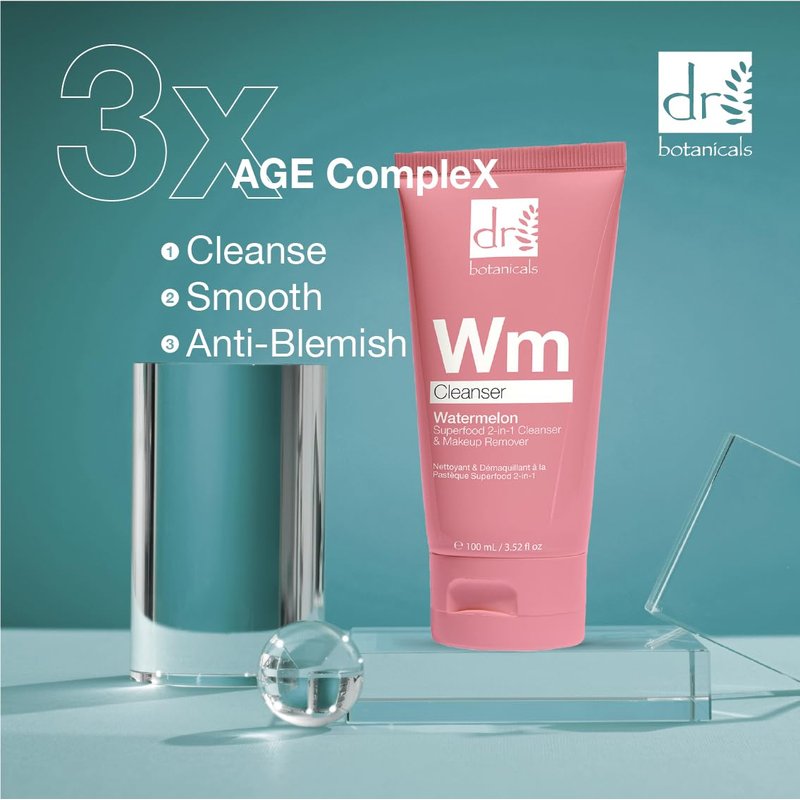 Dr Botanicals Watermelon Cleanser & Makeup Remover 100ml | Targets Blemishes and Skin Texture - Infused with Watermelon Seed Oil, Salicylic Acid, Glycolic Acid, Lactic Acid, and Gluconolactone