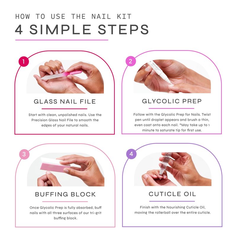 - Glycolic Acid Serum: Smooth, rejuvenate, and prep nails for treatment with the Glycolic Acid Serum. This powerful formula, developed by a dermatologist specifically for nails, gently exfoliates to remove surface damage and allow nails to better absorb nail treatments.