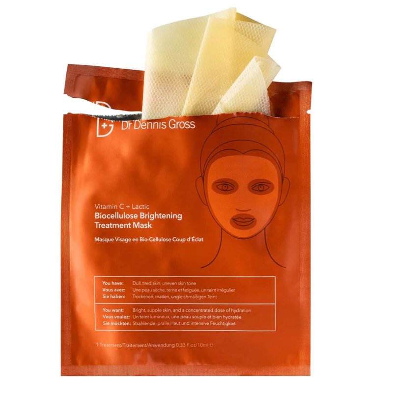 Dr Dennis Gross Vitamin C Lactic Biocellulose Brightening Treatment Mask, Revive Dry, Visibly Damaged Skin, 1 Pack