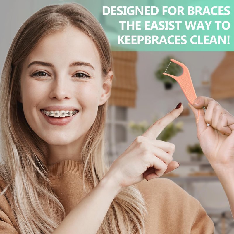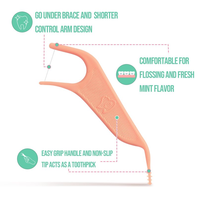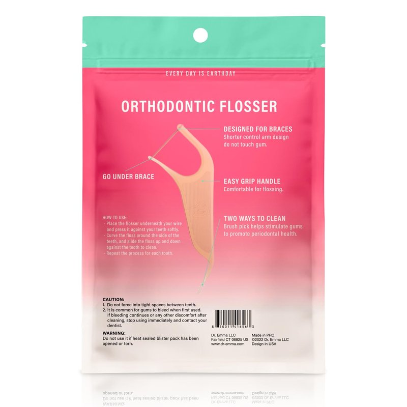Dr. Emma Orthodontic Flossers for Braces, Ortho Dental Floss Picks, Mint Flavor 60 Count/Bag (Pink, 2pack)