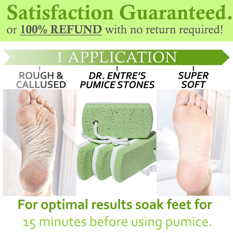 - PREMIUM 4 PACK: Dr. Entre's 4 pack of high quality pumice stones are durable, long lasting, contain no harsh chemicals, and will not dissolve or break down unlike other cheap foam pumices that flake and crumble.