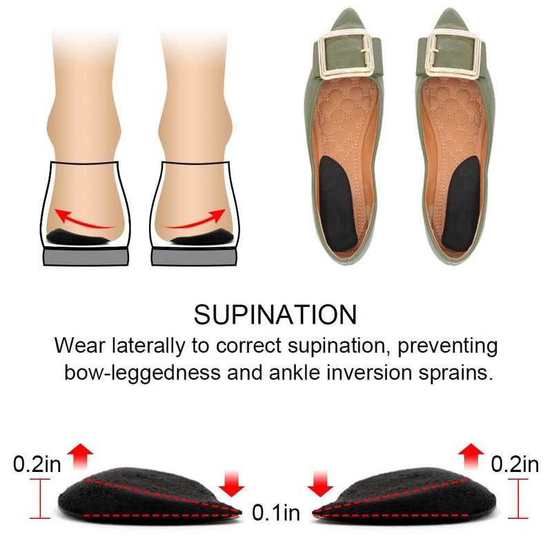 - MEDIAL & LATERAL HEEL WEDGE: For genu valgum (knock knees), genuvarum (bowlegged-ness), osteoarthritis knee pain, pronation (inward roll of foot), supination (outward roll of foot), posture problems, and other issues caused by uneven foot alignment. Use all day while standing, walking, etc.