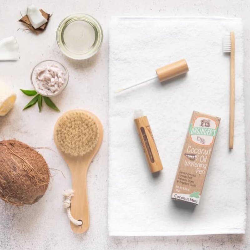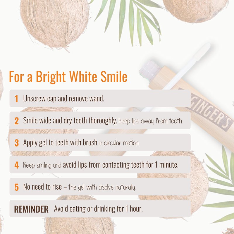 - DR. GINGER'S WHITENING PEN Take the express lane to bright white teeth minus abrasive ingredients. The coconut oil whitening pen is infused with an all-natural oil-pulling gel that safely and effectively lifts stains and whitens teeth. The coconut mint flavor is delicious and refreshing. Safe to use. Packaging includes a .35oz pen (Pack of 1)