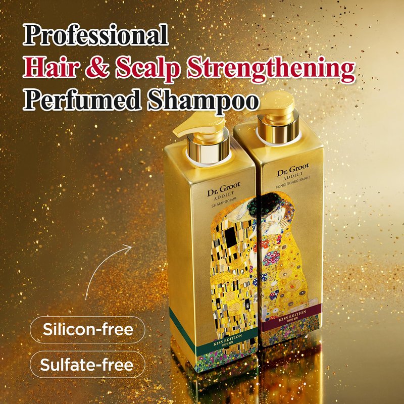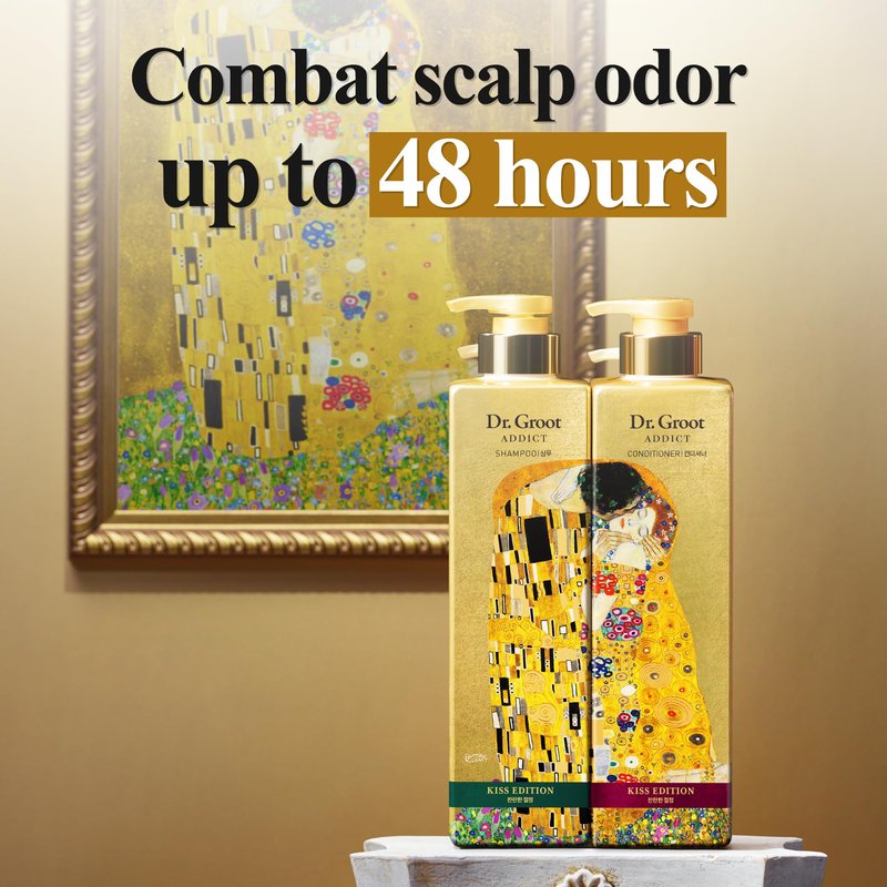 - DR. GROOT ADDICT KISS EDITION SHAMPOO (680ml/22fl oz) - Elevate your hair care experience with Dr. Groot's Addict Kiss Edition Shampoo, a testament to artistry and luxury. This 5th anniversary edition, inspired by Gustav Klimt's 'The Kiss,' seamlessly blends the worlds of art and hair care, making it a unique and collectible addition to your beauty routine.