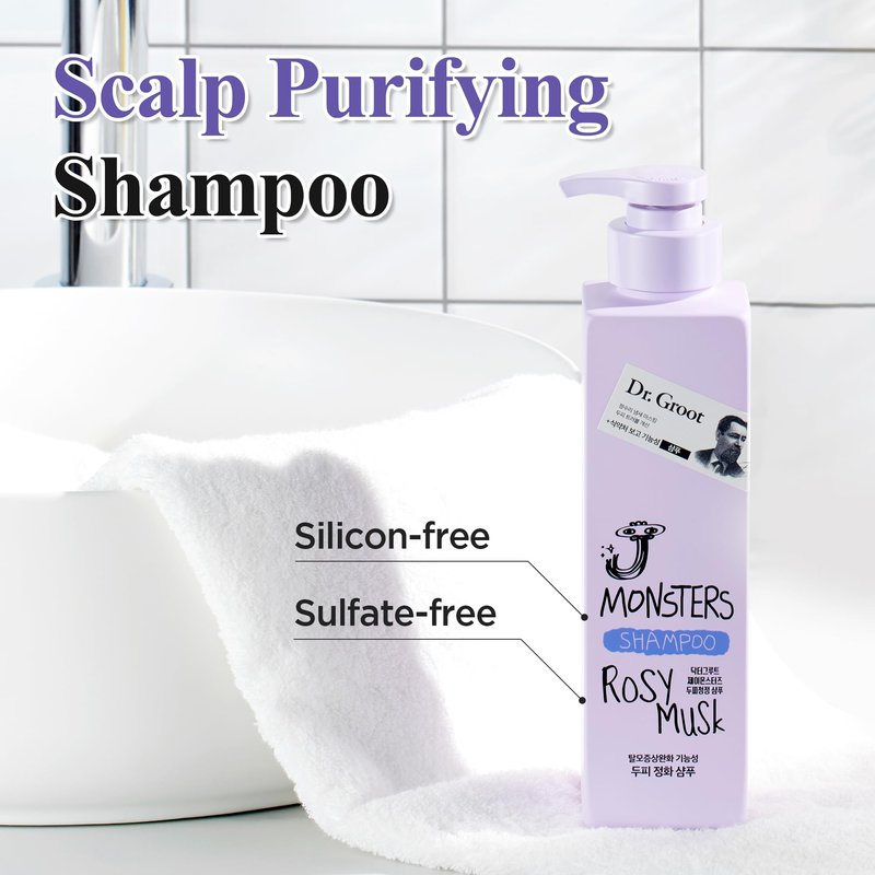 Dr.Groot J Monsters Scalp Purifying Shampoo Rosy Musk Set - Scalp Purifier Hair Loss Shampoo - Thickening Hair, Nourishing Roots & Silky Hair - Sulfate Free Shampoo for Hair Growth (475ml/16.06 Fl oz)