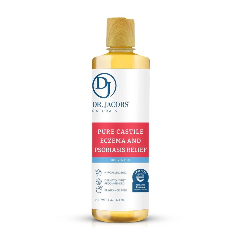 Dr. Jacobs Naturals Hypoallergenic Castile Soap, Dermatologist Tested Unscented Soap for Eczema & Psoriasis Relief - Sensitive Skin Body Wash, Vegan & Gluten-Free Formula for All-Day Hydration -16oz