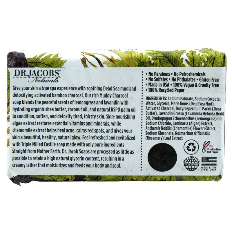 Dr Jacobs Naturals, Triple Milled Loofah Exfoliating Castile Bar Soap (Pack of 2) - Free of Parabens, Sulfates, Synthetics, Gltuen and GMO (Muddy Charcoal/Lucy Rose)
