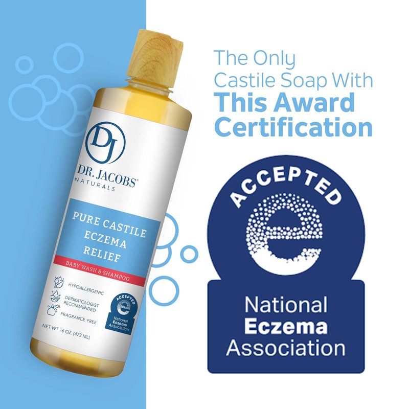 Dr. Jacobs Pure Castile Baby Wash for Eczema Relief, Effective Body Wash to Relieve Baby Eczema, Gentle Baby Shampoo, Unscented Soap for Baby's Sensitive Skin, and Hypoallergenic Baby Care -16 oz