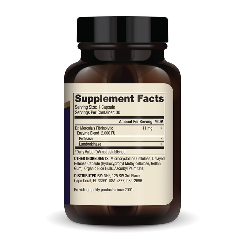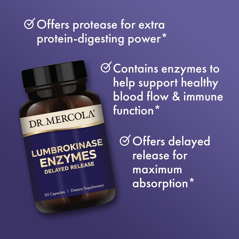 Dr. Mercola Lumbrokinase Enzymes Delayed Release, 30 Servings (30 Capsules), Pack of 3, Dietary Supplement, Supports Cardiovascular and Cognitive Health, Non-GMO