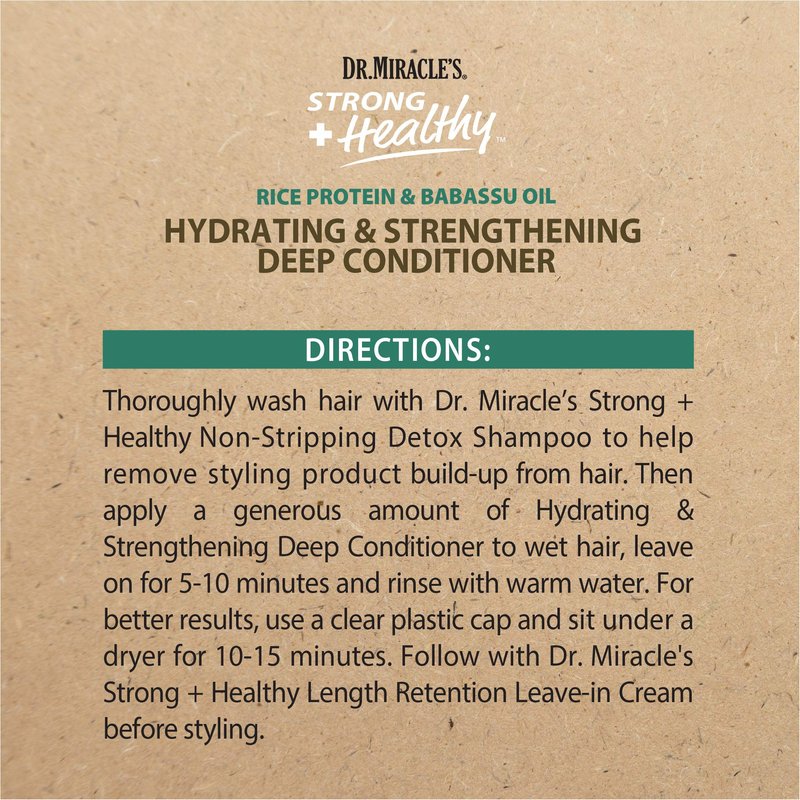 - HOW TO USE - Apply a generous amount to wet hair, leave on for 5-10 minutes and rinse with warm water. For better results, use a clear plastic cap and sit under a dryer for 10-15 minutes. Follow with Dr. Miracle's Strong + Healthy Length Retention Hydrating Leave-In Cream after to experience full treatment benefits.
