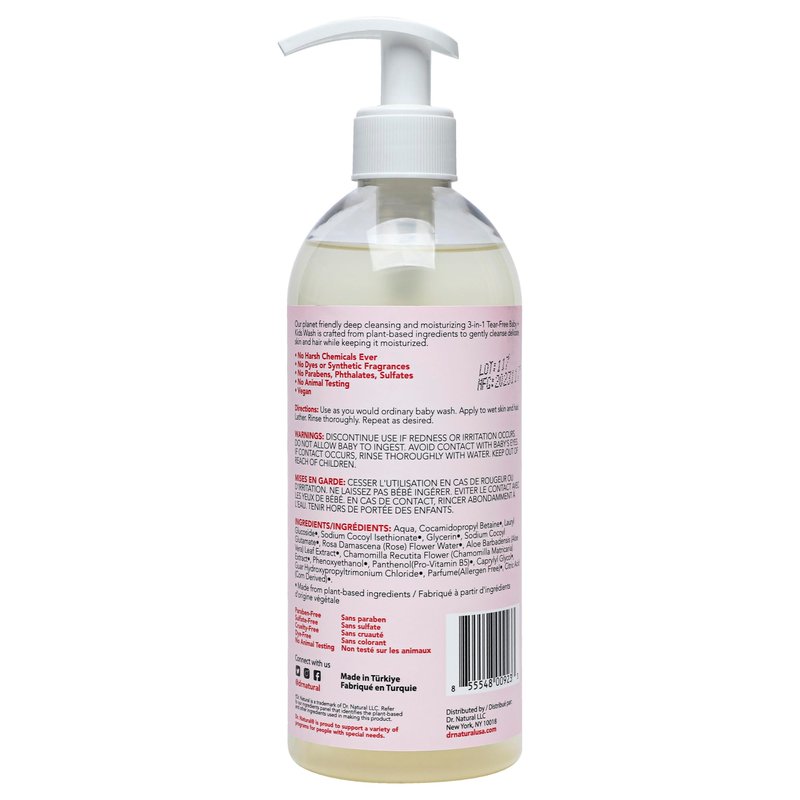 Dr. Natural 3-in-1 Tear-Free Baby Plus Kids Soap, Rosewater, 16 oz - Plant-Based Baby Shampoo and Body Wash - Sulfate and Paraben-Free - Hypoallergenic for Sensitive Skin - Infused with Essential Oils