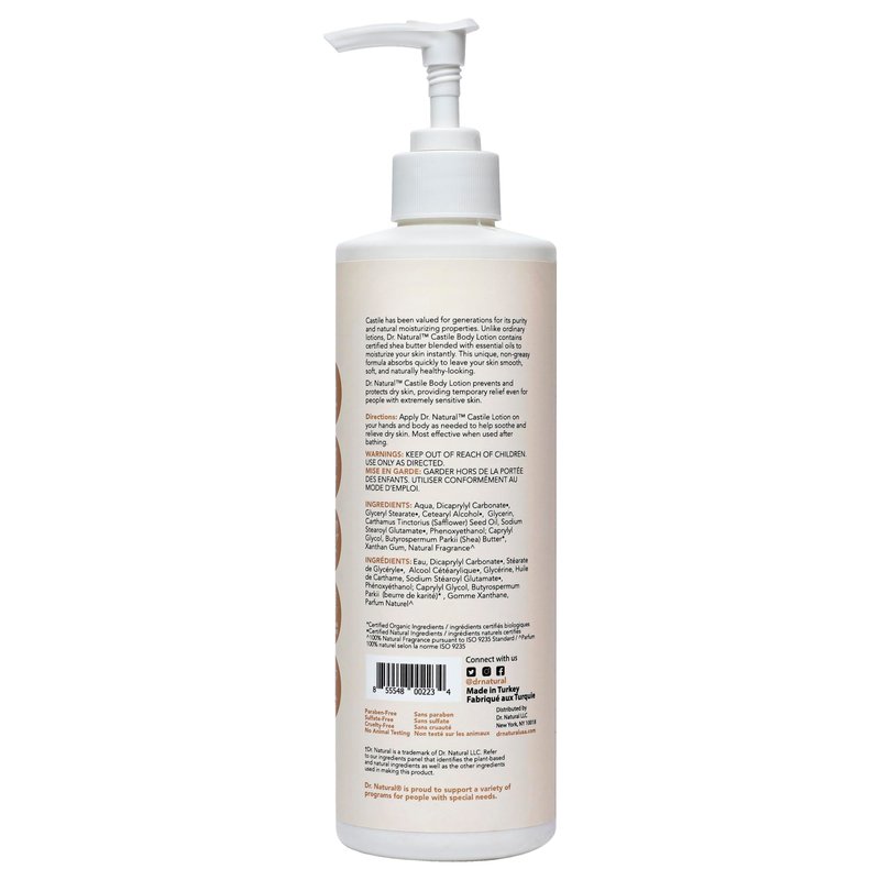 - Plant-Based: Experience the epitome of natural luxury with our Dr. Natural Castile Body Lotion, free of parabens and sulfates.