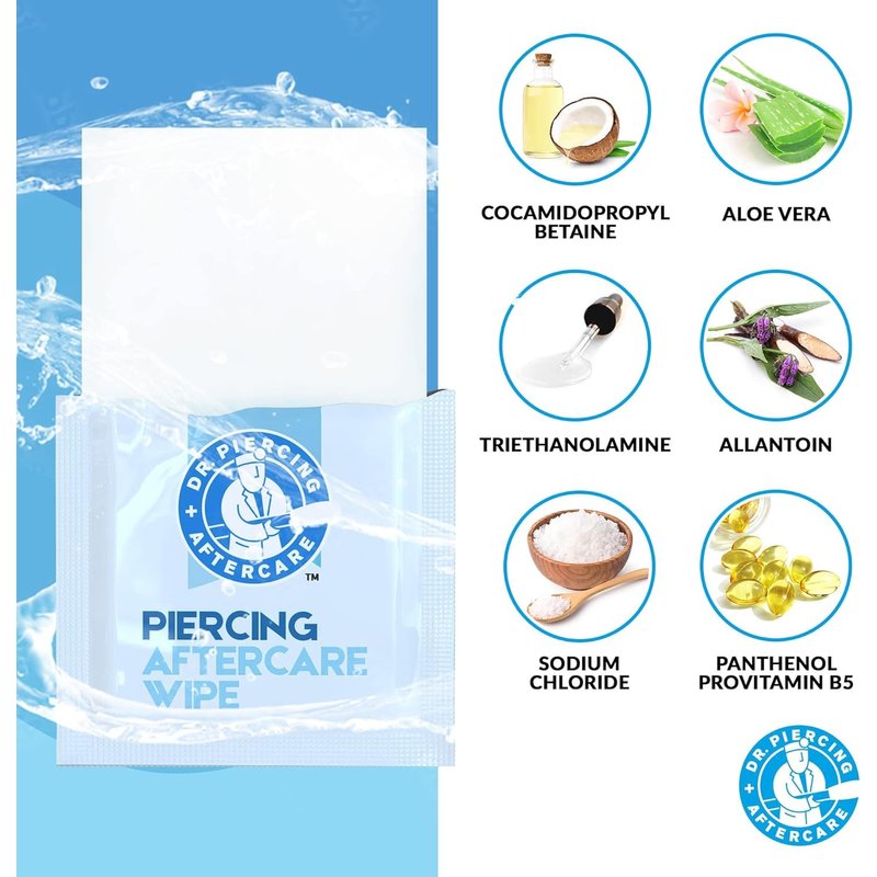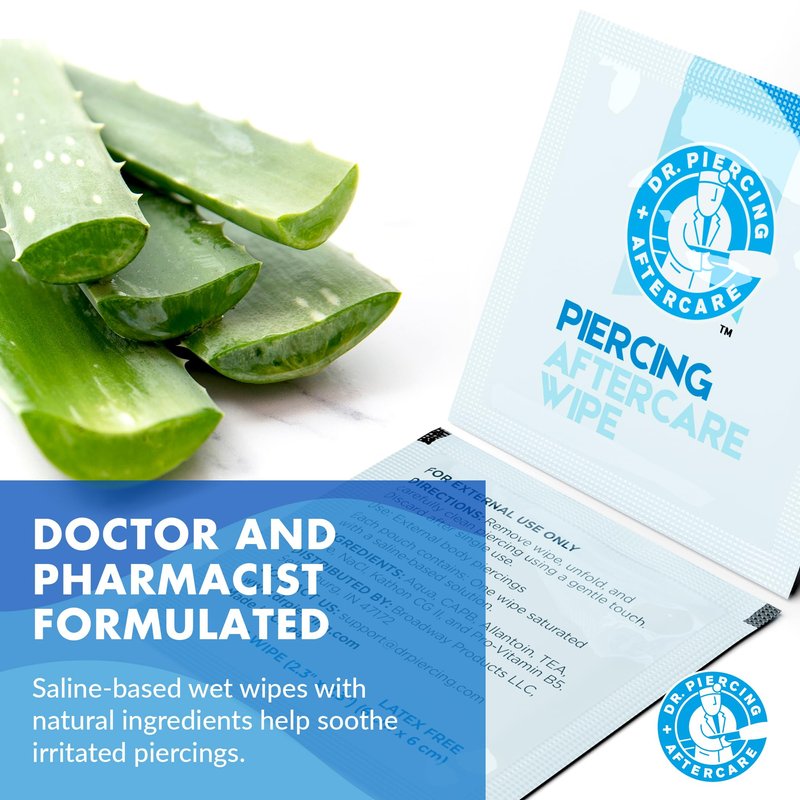 Dr. Piercing Aftercare Wipes – Piercing Aftercare | Saline Solution for Piercings - Keloid Bump Ear Piercing Cleaner – Ears Lips Belly Nose Piercing Bump - Piercing Hole Cleaner (50 Count)