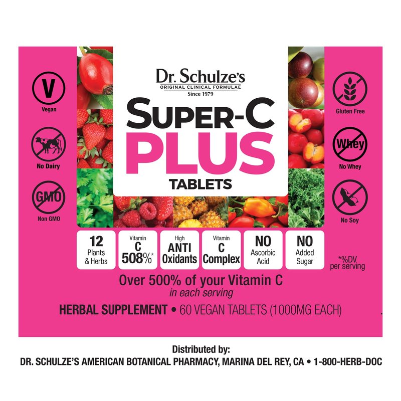 NO Gluten, NO Sugar, NO Soy, NO Artificial ANYTHING! Add pure, healthy Vitamin-C to your everyday diet with Dr. Schulze's Super-C Plus Vitamin C Tablets. Order yours today!