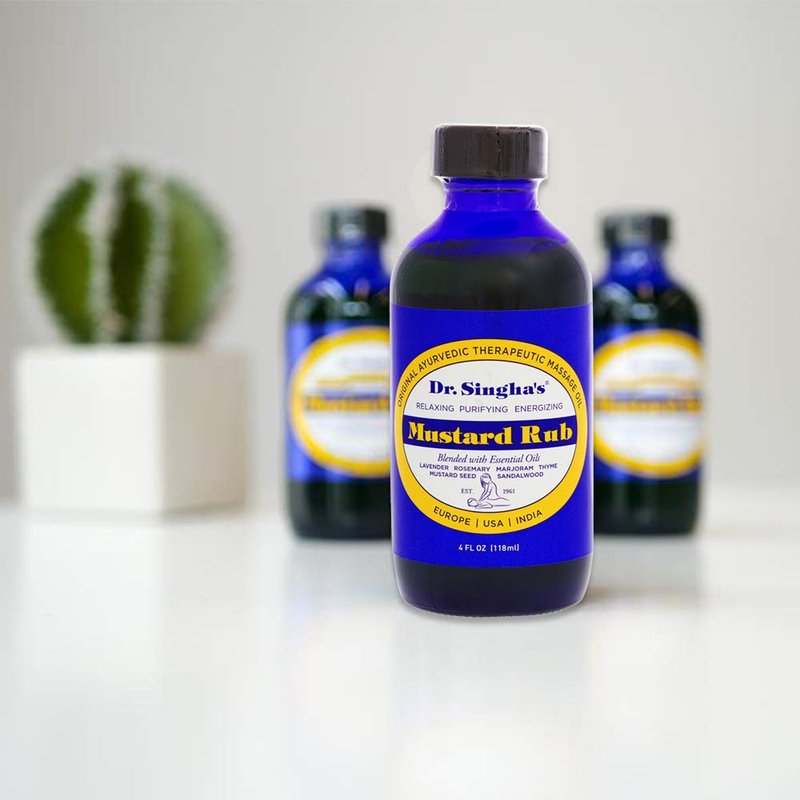 Dr. Singha's Mustard Rub, Therapeutic Body Massage Oil - with Best Essential Oils for Sore Muscles and Stiff Muscle Relief (4 Ounce)