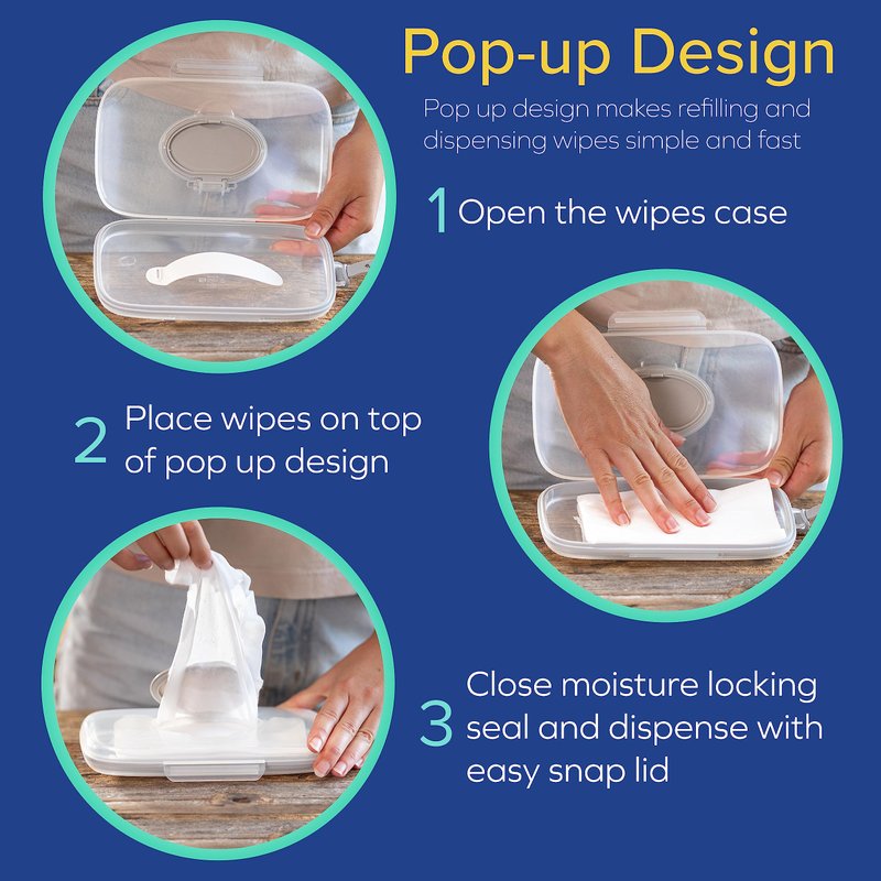 - Forget about dried out wipes. The case is designed with a moisture-locking seal and easy snap lid that keeps wipes ready for sticky fingers.