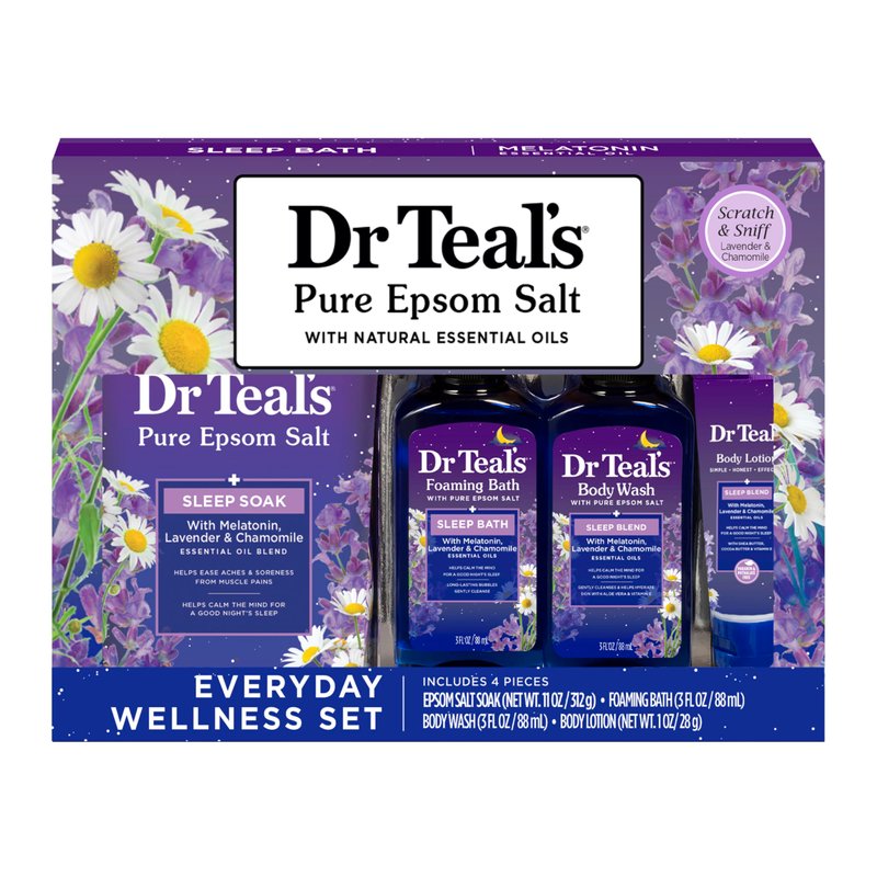 - Elevate your self-care ritual with this Melatonin & Essential Oil Blend Gift Set from Dr Teal's, perfect for embracing moments of tranquility and well-being.