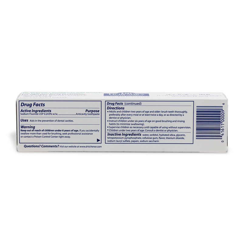 - Fluoride Toothpaste - Dr. Tichenor's Extra Whitening Fluoride Toothpaste contains fluoride, a key ingredient that helps fight cavities and promotes overall oral health.