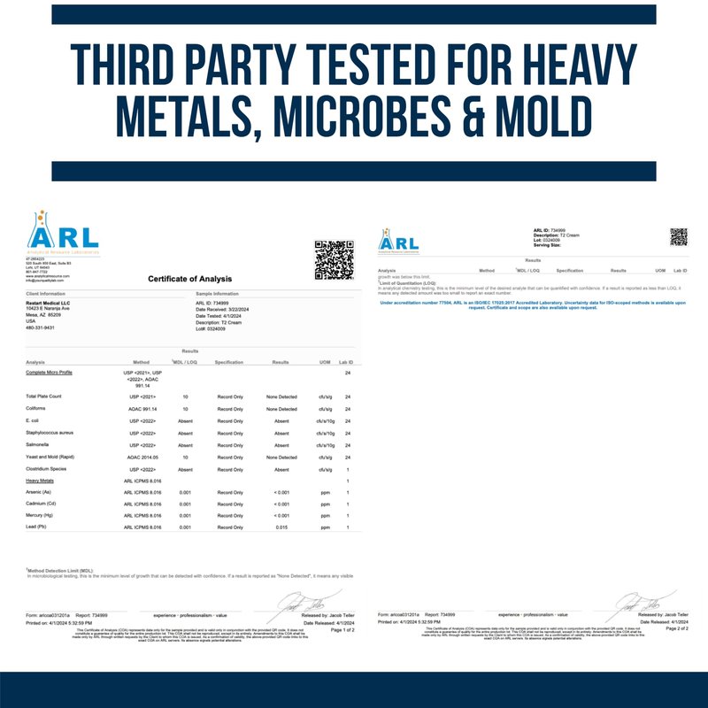 - SAFETY & QUALITY IN EVERY SERVING - All of Dr. Westin Childs' supplements are manufactured in the USA in a GMP-compliant facility. each lot is third-party tested and assayed for heavy metals, microbes, mold, and contaminants by an ISO-accredited lab testing facility. T2 Cream is gluten free, dairy free, soy free, GMO free, and free of artificial sweeteners, and preservatives.