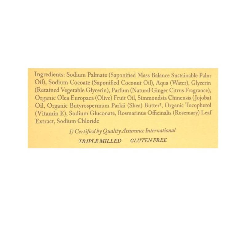 - Excitable and Smooth. Our 100% Natural Ginger Citrus Soap awakens and restores. Energizing Ginger combines with Lemon, Orange and Lime to engage your senses, while a soothing blend of Organic Jojoba and Olive Oils, Organic Shea Butter and Vitamin E moisturizes and conditions your skin.