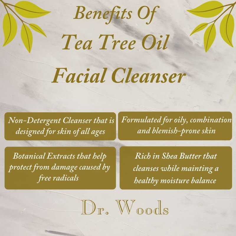 - Includes Two (2) bottles of Dr. Woods Tea Tree Facial Cleanser 8 oz