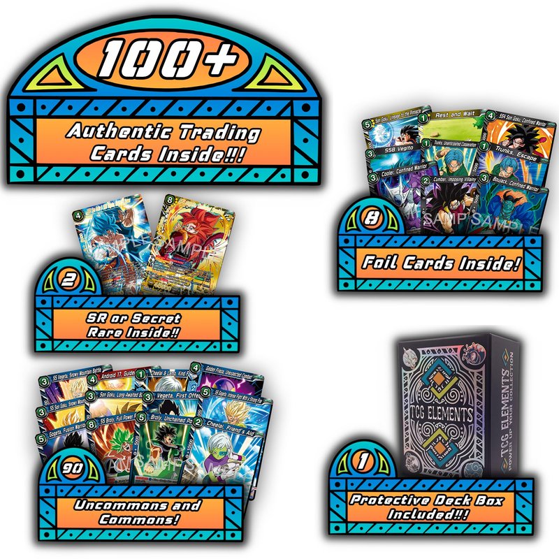 Dragon Ball Super Masters Starter Bundle | 100x Authentic Cards | 90x C/UC | 8x Foils | 2x SR/ALT | TCG Elements Deck Box Compatible with Cards