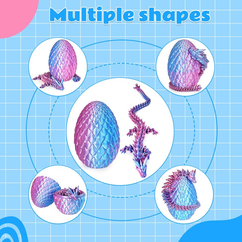 Dragon Eggs with Dragon Inside, 3D Printed Surprise Funny Gifts for Kids, Articulated Dragon Fidget Toys for Adults, Executive Desk Toys Office Room Décor (Gradient Light Purple-Red, M-Size)