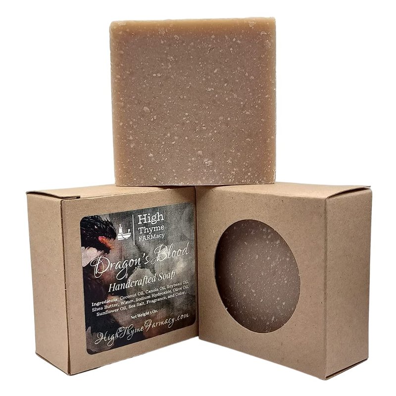 Elevate your bathing experience with our exquisitely handcrafted Dragon's Blood Soap, a testament to the art of natural skincare tailored for men. Infused with captivating notes of amber, vanilla, and patchouli, complemented by hints of orange and other fruity aromas, this soap embodies the essence of luxury and indulgence. Formulated with a meticulous blend of natural ingredients, including coconut oil, shea butter, and olive oil, our organic soap bar stands as a beacon of purity and quality. The absence of preservatives, animal products, petroleum products, and parabens ensures that you receive a natural soap bar of unrivaled excellence, offering a rich lather that leaves your skin feeling moisturized and rejuvenated. Our men's soap bar is meticulously handcrafted using the cold process method, ensuring that each bar is a masterpiece of artisanal craftsmanship. Its generous size, approximately 3" x 3" x 1" and weighing around 5 ounces, guarantees a prolonged and luxurious bathing experience, making it the perfect choice for those seeking a natural bar soap designed to last. Immerse yourself in the opulence of our patchouli-infused luxury soap, meticulously formulated to cater to the discerning tastes of men seeking a natural body soap that exudes elegance and sophistication. Whether you appreciate the allure of all-natural bar soap, handmade bath soaps, or vegan soap options, our Dragon's Blood Soap resonates with the essence of fine craftsmanship and luxurious indulgence. Experience the epitome of luxury with our scented bar soap, carefully designed to deliver a sensorial journey of opulence and sophistication. Elevate your daily routine with the allure of our luxury soap, handcrafted to perfection and imbued with the finest natural ingredients, ensuring that every wash becomes a moment of indulgence and rejuvenation.