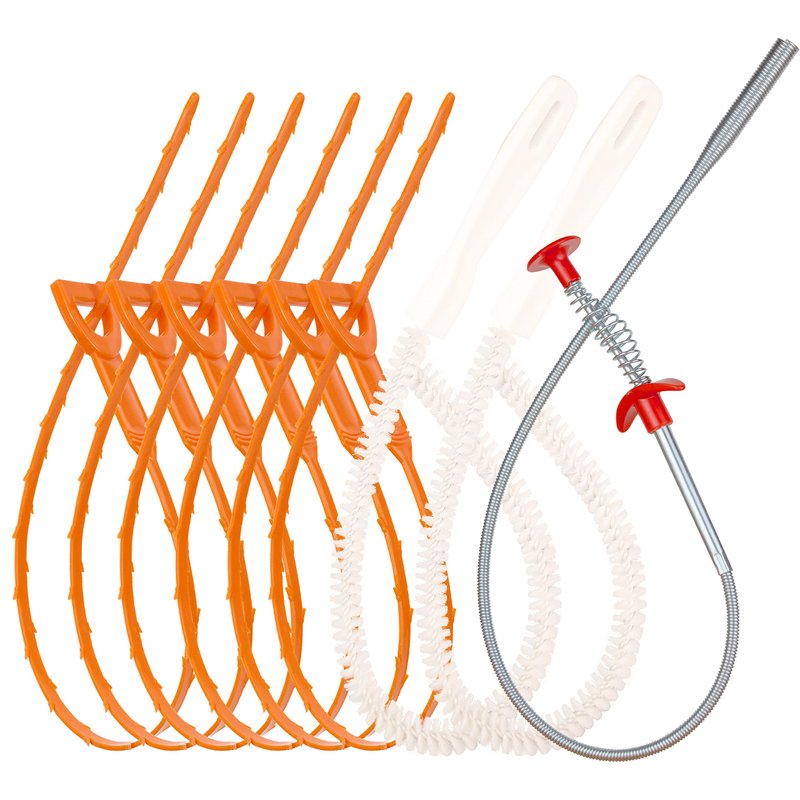 - 【PRACTICAL COMBINATION】 6 pack of drain hair cleaning snake, 1 pack of metal clog remover, 2 pack of sink drain overflow brush. This practical set covers the functions of cleaning hair, grabbing blockages and daily cleaning pipes.