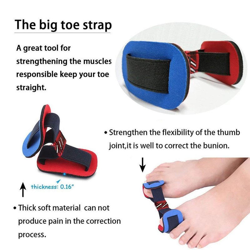 - Big Toe Strap Bunion Straightener: Stretch to realign and relax the big toes. Good exercises for alleviating the tension, training the toes flexibility and a preventive against foot problems.