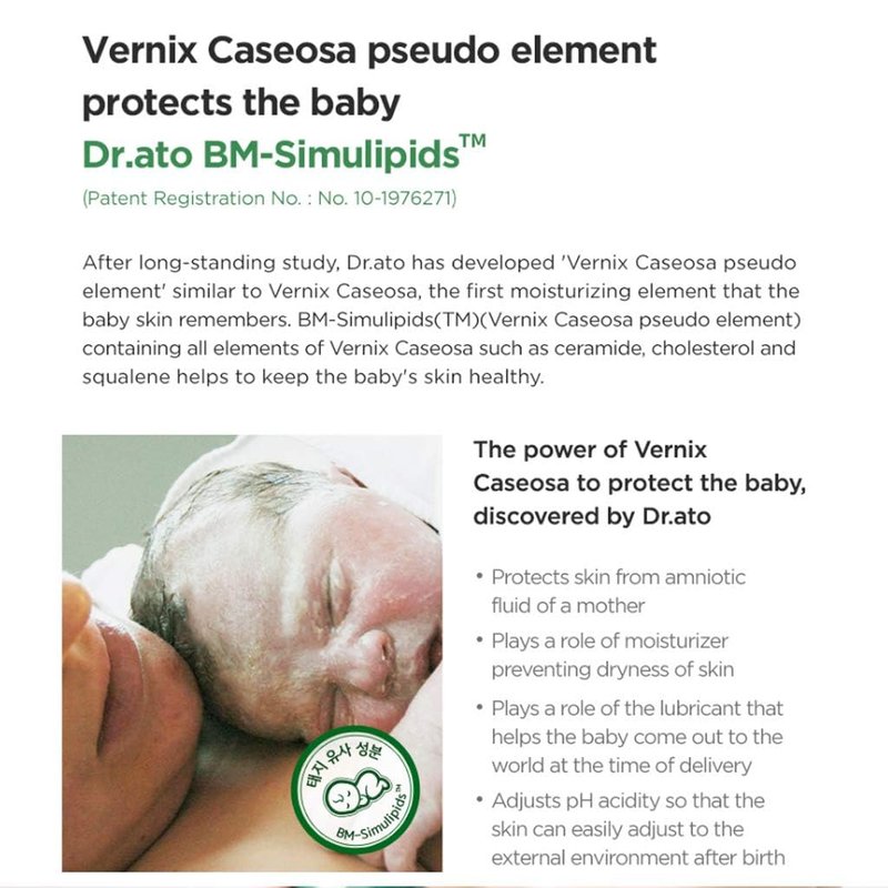 - DEEP HYDRATION & BARRIER PROTECTION: Dr. ato's body wash creates a soft & dense foam that cleans your delicate skin without losing the moisture. Unique vernix-like ingredients and natural moisturizers provide lasting moisture and strengthen your skin's natural defense barrier.