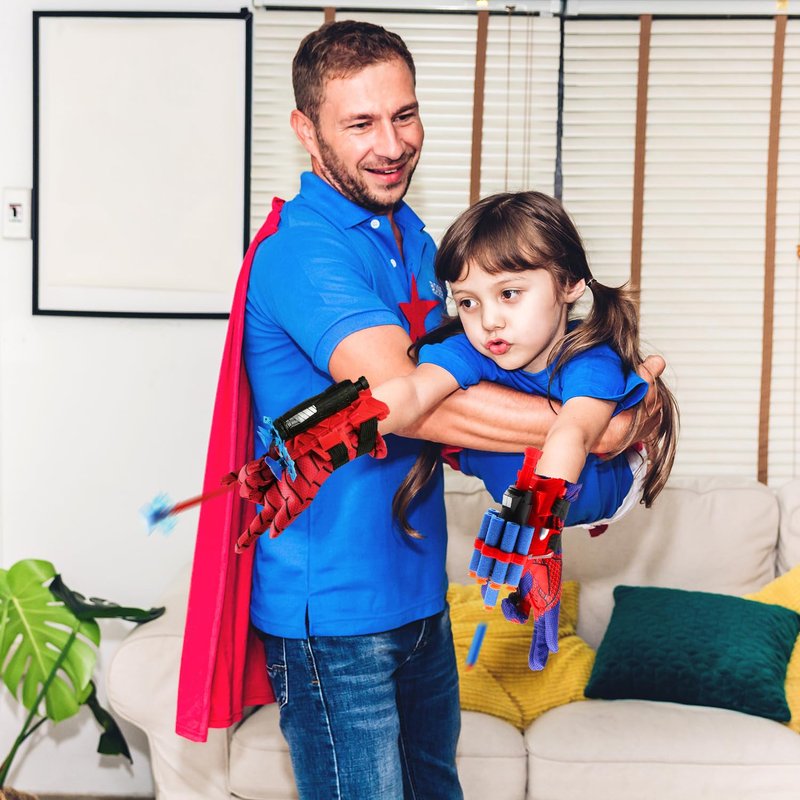 - Packing List:Include Pack Product List: 2* Glove, 2* Launcher, 10 * Bullets Darts, 20 * Sucker Darts. Flexible wrist strap adjustment allows for a comfortable fit, making your child feel like a true hero when they wear this Spider glove launcher.