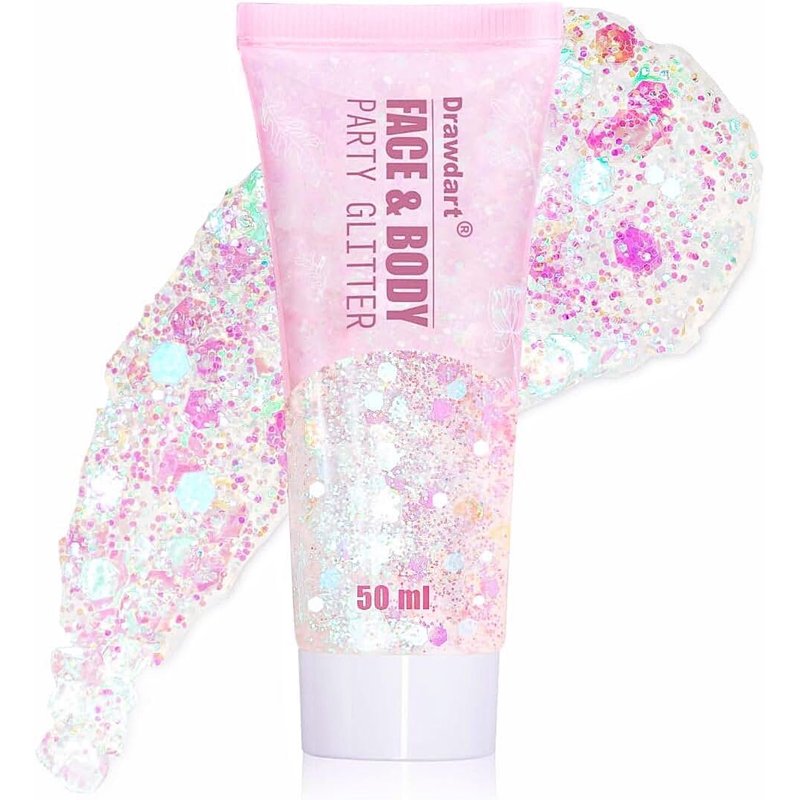 Drawdart Face & Body Glitter, Cosmetic-Grade Glitter Gel-Singer Concerts Disco Festival Rave Accessories, Chunky Hair Sparkling Glitter Gel for Women, Vegan & Cruelty Free- 50ml (White)